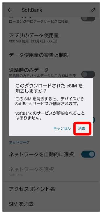 eSIMを消去した場合でも、ご契約が解除されたわけではありません。