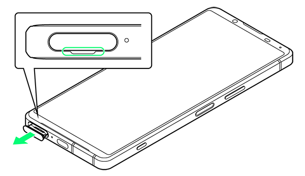 - ミゾに指先(爪)をかけて、SIMカード/SDカード挿入口のカバーをまっすぐに引き出してください。