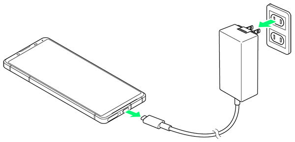 ここでは、ACアダプタ(USB PD-PPS対応 USB Type-C® 急速充電 ACアダプタ[ZSDBAV](SB-AC22-TCPD))を使用して充電する方法を例に説明します。