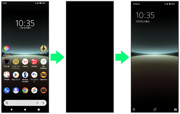 - 画面点灯時に電源キーを押すと、手動で画面ロックすることができます。