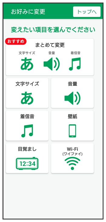 「お好みに変更」からスマホの基本的な設定をかんたんに変更することができます。