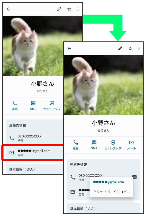 画面をロングタッチすると利用できる設定や項目が表示される画面もあります。