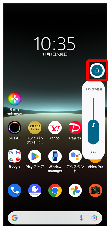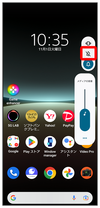 クイック設定パネルからマナーモード(バイブなし)に設定することができます。