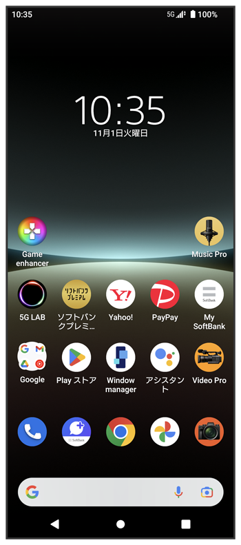本機のおもな操作は、画面ロックを解除すると表示される「ホーム画面」と、アプリを一覧表示した「ランチャー画面」から行います。