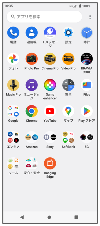 「ランチャー画面」は、ホーム画面で画面を上にフリックすると表示できます。