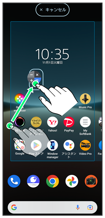 追加したいアイコンをロングタッチし、追加したい場所にドラッグ