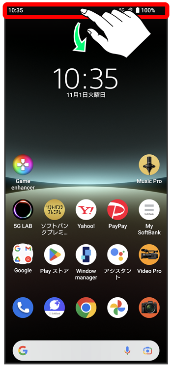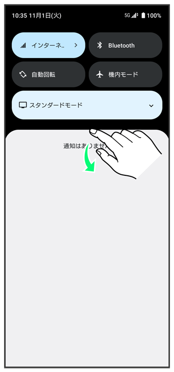 - ステータスバーを2本指で下にフリックしても、クイック設定パネルを表示できます。