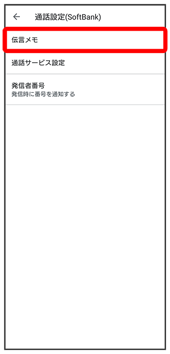 通話設定(SoftBank)画面で- 「伝言メモ」が有効のときに利用できます。