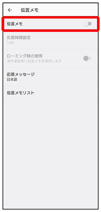 通話設定(SoftBank)画面で対象の伝言メモをロングタッチ/- 確認画面が表示されたときは、画面の指示に従って操作してください。