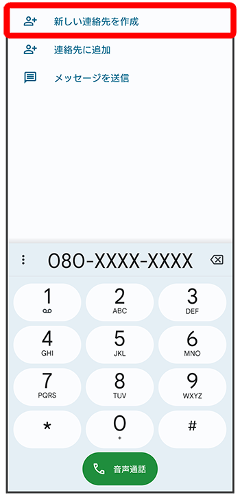 ダイヤルキーをタップして、登録したい電話番号を入力