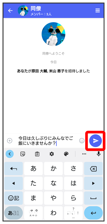 グループメッセージ内で、宛先を指定してメッセージを送信することができます。
