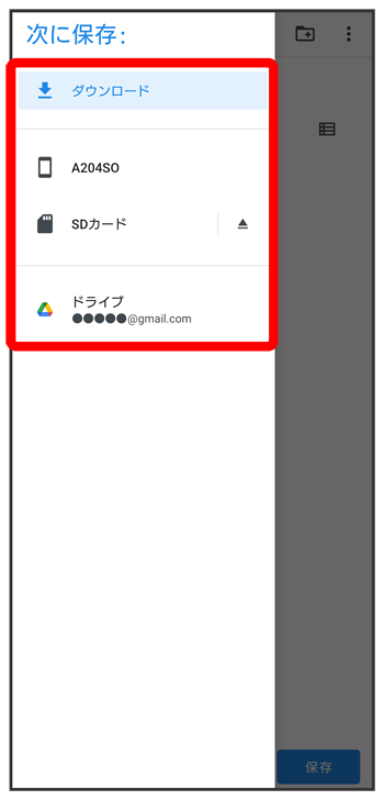 - 端末内へ保存したい場合は機種名/ダウンロードを選択します。