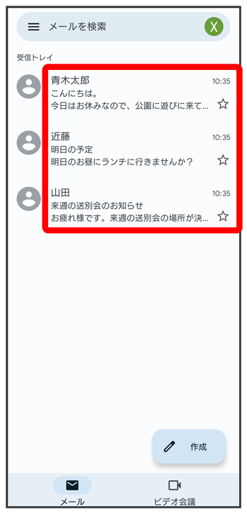 メール一覧画面が表示されます。