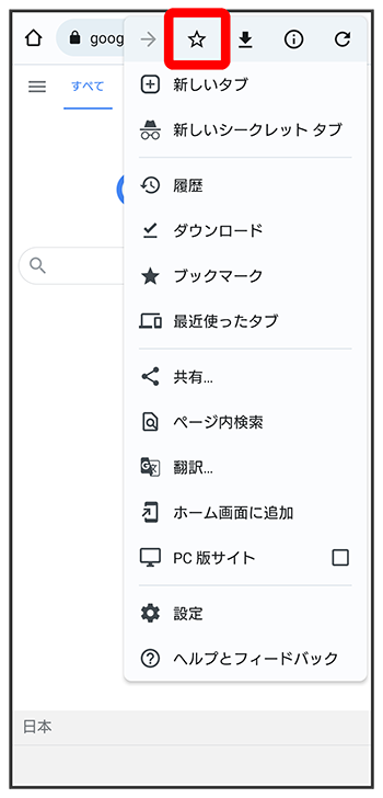 表示中のウェブサイトがブックマークに登録されます。