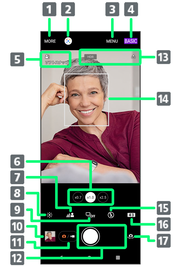 ベーシックモードの撮影画面の見かた