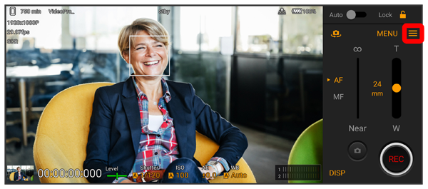 - オレンジ色の文字で表示されているパラメーターは調節することができます。Video Pro画面でパラメーターをタップして設定や数値を選択してください。