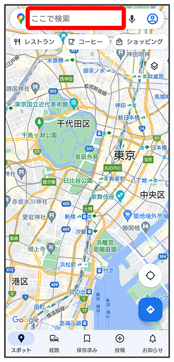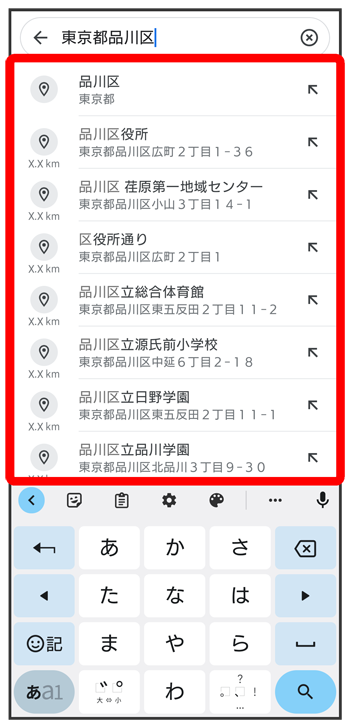 住所や都市、施設名などを入力選択候補から住所や都市、施設名などをタップ