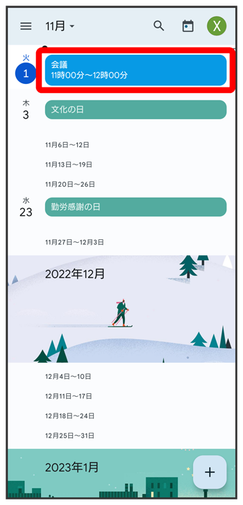 をタップすると、予定を編集できます。 - 予定詳細画面で