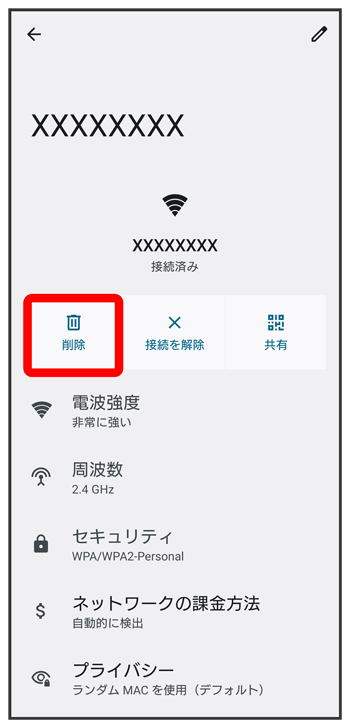 Wi-Fi ネットワークが削除されます。