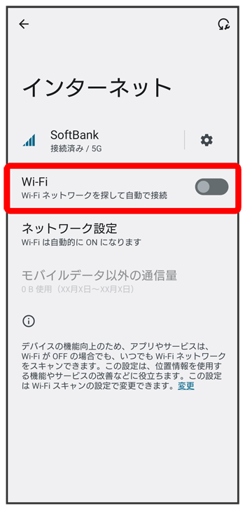 Wi-Fiが有効になります。