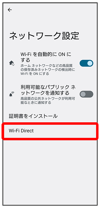 Wi-Fi Direct設定画面が表示されます。