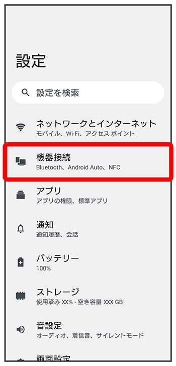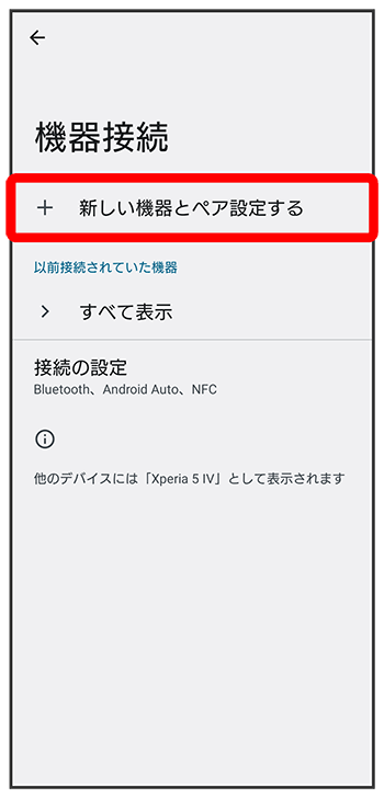 - 機器接続画面の上部に、ペア設定中のBluetooth機器が表示されます。
