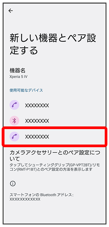 「使用可能なデバイス」欄に、近くにあるBluetooth機器が表示されます。
