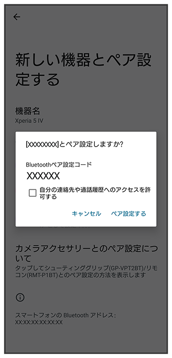 機器接続画面でペア設定中の機器をタップ/ペア設定中の機器の
