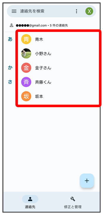 表示)続けてほかの対象の連絡先をタップと操作します。