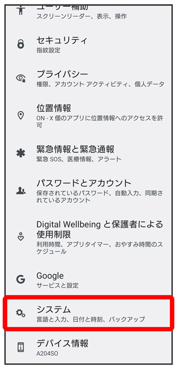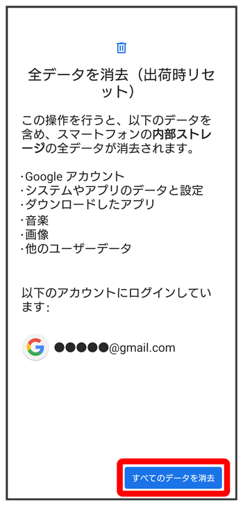 - 画面ロック解除方法を「パターン」/「ロックNo.」/「パスワード」に設定している場合は、画面ロック解除の入力画面が表示されます。画面ロック解除方法を入力してください。