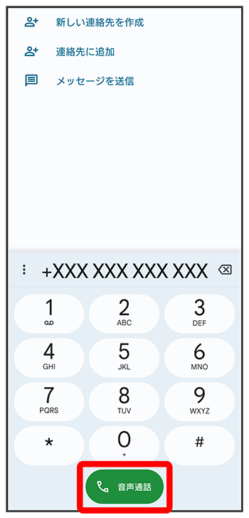 国番号のあとに相手の電話番号(先頭の「0」を除く)を入力