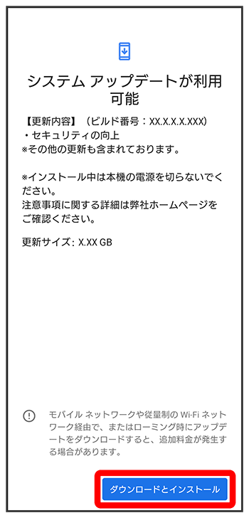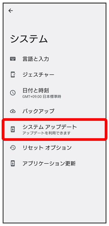 通知パネルに表示されるソフトウェア更新の通知をタップし、画面の指示に従って操作してください。