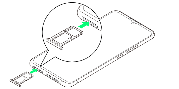 USIMカード/SDカードトレイを本機に差し込み、奥までまっすぐに押し込む