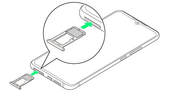 USIMカード/SDカードトレイを本機に差し込み、奥までまっすぐに押し込む