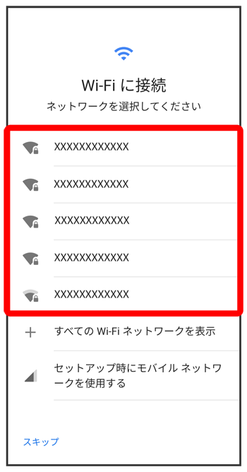- Wi-Fi設定を省略するときは、/を選択します。以降は、画面の指示に従って操作してください。