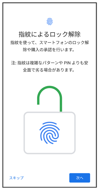 - PINコードの登録についての画面が表示された場合は、画面の指示に従って設定またはスキップしてください。