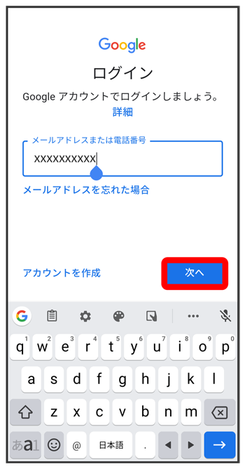 Google アカウントのログイン画面でメールアドレスを入力