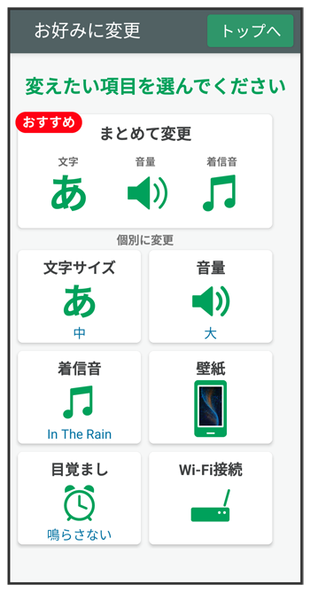 「お好みに変更」からスマホの基本的な設定をかんたんに変更することができます。