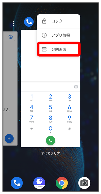 本機の表示画面を分割し、2つのアプリを表示、操作できます。