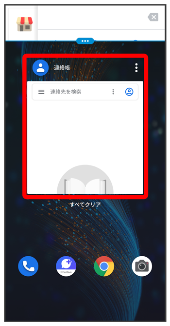 マルチウインドウ画面が表示され、選択したアプリが画面上部に表示されます。