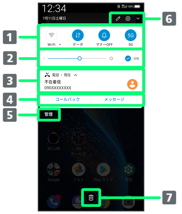 - クイック設定パネルの編集や表示/非表示、端末設定メニューの表示ができます。