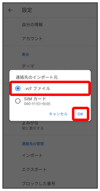 SDカードに保存(バックアップ)した電話帳データを読み込み(インポート)できます。