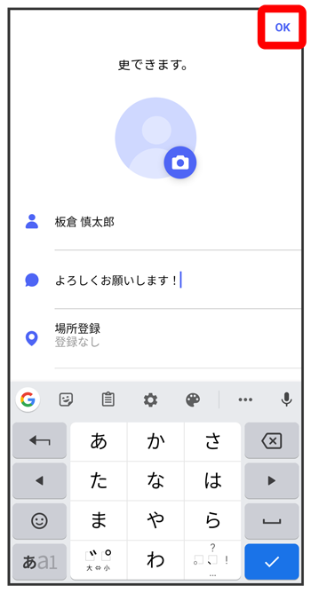 - 設定せずにをタップして、あとで設定することもできます。詳しくは「プロフィールを編集する」を参照してください。