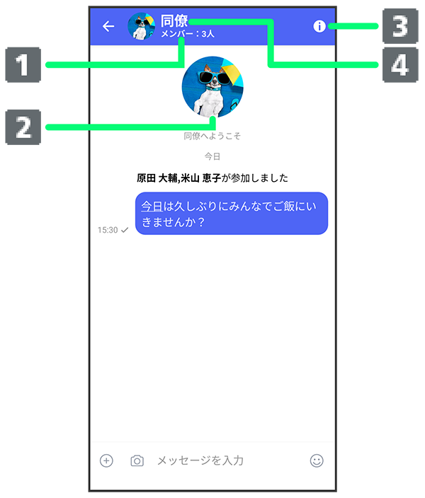 グループメッセージ画面で- 確認画面が表示されたときは、画面の指示に従って操作してください。