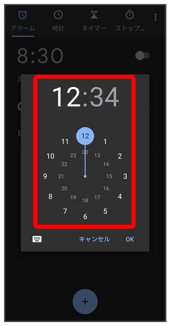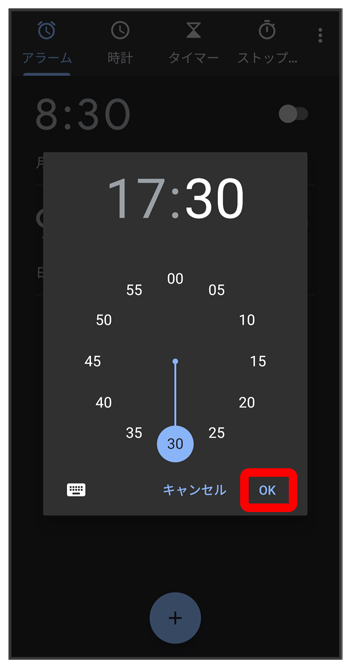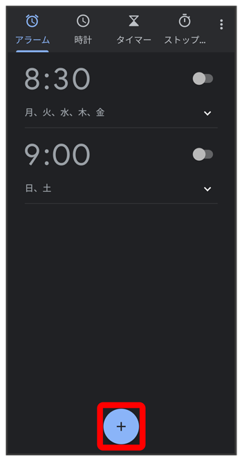 アラーム設定時刻になると、アラーム音や振動でお知らせします。