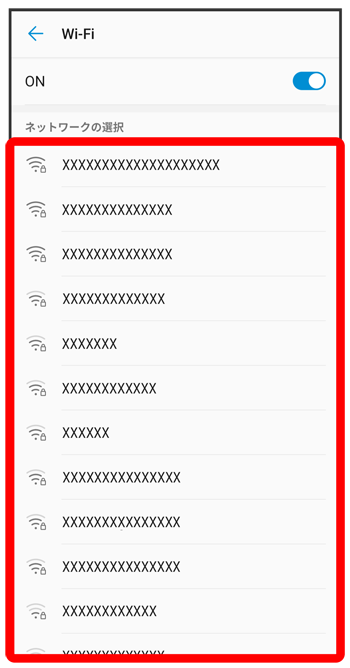 Wi-Fi設定画面で- をタップするたびに、ON(