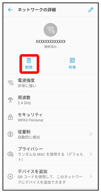 - アクセスポイントを削除すると、再接続のときにパスワードの入力が必要になる場合があります。