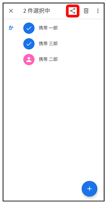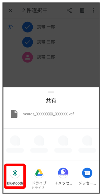 - 複数の連絡先を送信する場合は、送信する連絡先にチェックを入れます。