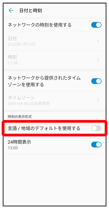 言語の設定に従って24時間表示/12時間表示が自動設定されます。