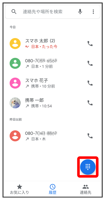 日本国内で電話をかけるときと同じ操作で電話をかけることができます。
